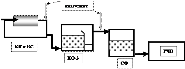 БС – КО-3 – КК(озон) – СФ(песок) – СФ(ГАУ) –хлор+аммиак – РЧВ.