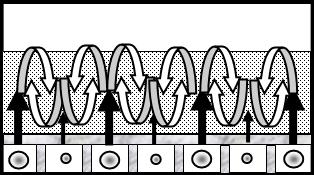 Чередующаяся промывка. При промывке с переменной по площади фильтра интенсивностью подачи промывной воды зоны повышенного и пониженного расходов чередуются. В зонах повышенных скоростей зерна загрузки движутся вверх и, достигнув поверхности слоя, опускаются в зонах пониженных скоростей. Образуются замкнутые контуры, перемешивающие загрузку, что существенно меняет картину ее гидравлической сортировки.