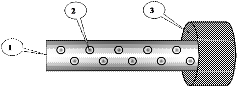 Рис.5.36 Пористая дренажная труба: 1 - стандартная труба (металл, пластмасса); 2 – калиброванное отверстие; 3 – пористая оболочка из полимербетона, синтетического волокна, стекловолокна.