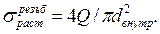 Напряжения растяжения в резьбе