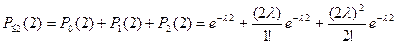 Пример. По шоссе мимо наблюдателя движется в одном направлении простейший поток машин. Известно, что вероятность отсутствия машин в течение 5 минут равна 0,5. Требуется найти вероятность того, что за 10 мин мимо наблюдателя пройдет не более двух машин.