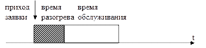 Под разогревом будем понимать время подготовки системы к работе (это может быть, например, диагностика оборудования системы). Заявка может прийти либо в «холодную» систему, либо в уже «разогретую».В первом случае работа системы начинается с разогрева, во втором- разогрев не требуется.