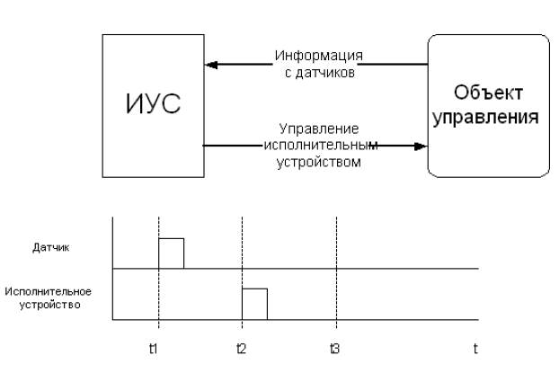 Рисунок 1. Взаимодействие ИУС и ОУ происходит в реальном масштабе времени