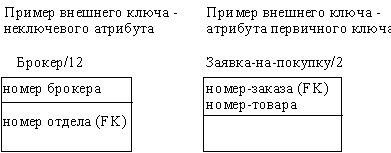 Сущности могут иметь также внешние ключи (Foreign Key – FK), которые могут использоваться в качестве части или целого первичного ключа или неключевого атрибута. Внешний ключ изображается с помощью помещения внутрь блока сущности имен атрибутов, после которых следуют буквы FK в скобках (рисунок 2.35).