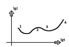 2. Несколько минут. Здесь ток резко возрастает на 2-3 порядка. В некоторых случаях уж это возрастание тока может привести к электро-тепловому. Возможно такое объяснение этого процесса. Компенсация инденторов донора заканчивается, по концентрации доноров _____ возрастать, поэтому плотность тока резко увеличивается.