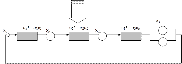 Пример. Преобразование замкнутой стохастической сети в циклическую замкнутую СМО.