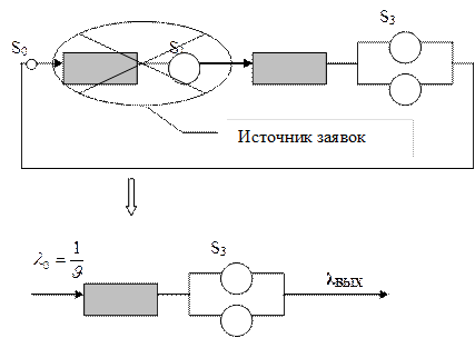 Пример. Преобразование разомкнутой стохастической сети в совокупность одно и многоканальные СМО.