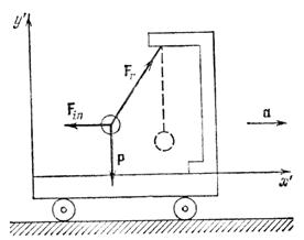 Следовательно, в неинерциальной системе отсчета при ускоренном прямолинейном движении этой системы на тела неподвижные относительно этой системы действует сила инерции