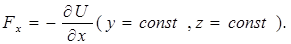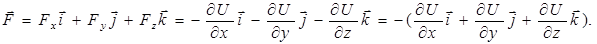 Зная вид функции U(x,y,z), можно найти силу, действующую на частицу в каждой точке поля. Рассмотрим перемещение частицы в произвольном направлении. Такое перемещение сопровождается совершением над частицей работы