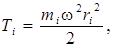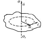 Определим выражение кинетической энергии для тела, вращающегося вокруг выделенной оси (рис. 3.2). Разобьем тело на отдельные материальные точки. Для каждой из материальных точек можно записать выражение