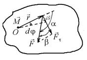 Если тело, закрепленное на неподвижной оси О, приходит во вращательное движение под действием некоторой силы