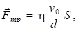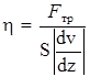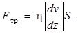 где η – коэффициент пропорциональности, зависящий от природы и состояния жидкости и называемый коэффициентом внутреннего трения или коэффициентом вязкости, или просто вязкостью жидкости (газа).