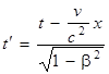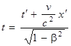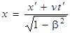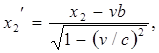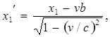 С помощью постулатов Эйнштейна можно показать, что координаты и время в разных системах отсчета связаны следующими соотношениями: