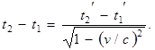 Введя обозначение t2 – t1 = ∆t и t 2' – t 1' = ∆t', получим формулу