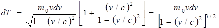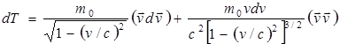 Найдем выражение для кинетической энергии материальной точки в релятивистской механике. Приращение dT кинетической энергии материальной точки при элементарном перемещении