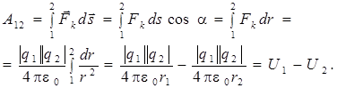 Покажем, что электростатическое поле является потенциальным. Для этого рассчитаем работу кулоновской силы при перемещении точечного положительного заряда q 2из точки1 в точку 2 (рис. 6.1б) в электрическом поле, созданным точечным зарядом q 1: