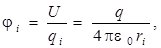 где r i – расстояние от точки поля, обладающего потенциалом φi, до заряда q, создающего поле.