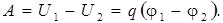 Работу, совершенную электрическими силами при перемещении произвольного по величине заряда q можно выразить через разность потенциалов φ1 и φ2 в точках 1 и 2: