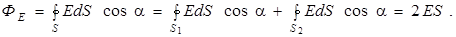 не пересекают боковой поверхности), и поэтому остается поток только через основание площади S 1 = S 2 = S: