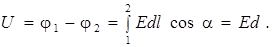 Оценим разность потенциалов φ 1 – φ 2 (или напряжение U) между обкладками конденсатора, находящимися на расстоянии d друг от друга. Для этого используем формулы (6.5) и (7.6):