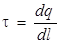 1-й этап. Введем линейную плотность заряда нити. Для этого на заряженной нити выбираем элемент длины dl, содержащий заряд dq, и рассчитаем τ по формуле