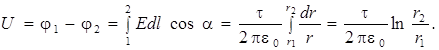 Формула (7.8) позволяет оценить разность потенциалов между двумя точками, находящимися на расстояниях r 1 и r 2 от нити (рис. 7.5а):