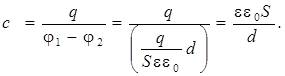 где q – заряд положительно заряженной пластины конденсатора, φ1 – φ2 – разность потенциалов между его обкладками.