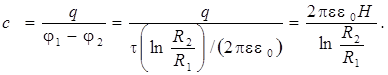 Запишем формулы для электроемкости конденсаторов разного вида.