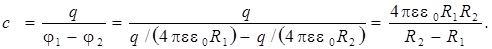 не будет зависеть ни от qни от φ, он называется электроемкостью проводника. Электроемкость проводника характеризует его способность накапливать заряды и зависит только от геометрических размеров проводника, его формы и диэлектрических свойств окружающей среды (ε). Действительно, в случае металлической сферы можно записать: