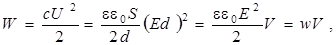 где V = Sd – объем пространства между обкладками конденсатора, w – объемная плотность электростатического поля.