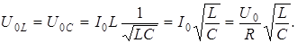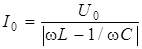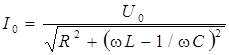 Амплитуда тока определяется амплитудой напряжения U0, параметрами цепи C, L, Rи частотой ω: