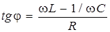 Ток отстает по фазе от напряжения на угол φ, который зависит от параметров цепи и частоты: