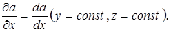 (П.5) При вычислении производной величины а по координате х в формуле (П.4) считается, что координаты y и z остаются постоянными – такая производная называется частной производной по координате х: