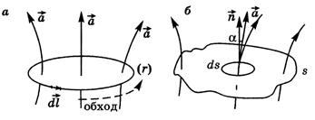 совпадает с касательной к контуру и направлен по обходу контура (рис. П.3а). Тогда циркуляцией вектора
