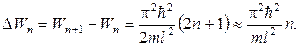 Оценим расстояние между соседними уровнями для различных значений массы частицы m и ширины ямы l. Разность энергии двух соседних уровней равна