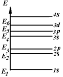 Электроны, которые характеризуются одинаковыми значениями n и l образуют подоболочку. Число электронов в подоболочке равно 2(2 l + 1). Итак, у атома Cu, находящегося в свободном состоянии, электроны заполнили полностью K, L, и M оболочки, внешний (валентный) электрон находится в состоянии 4 s. Если возбудить атом (сообщить ему незначительное количество энергии), то изменит свою энергию прежде всего внешний электрон, перейдя, например, в состояние 4 p и электронная конфигурация у атома примет выражение: