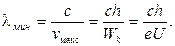 Экспериментальные исследования показали, что существует два вида рентгеновских лучей. Если энергия электронов не превышает некоторой критической величины, зависящей от материала антикатода, возникают рентгеновские лучи со сплошным спектром, подобным спектру белого света. Такое рентгеновское излучение называют белым. Белое рентгеновское излучение, как показали исследования, вызывается торможением быстрых электронов при их движении в веществе. Поэтому белое излучение называют также тормозным. Этот тип излучения испускается электронами, движущими в веществе. Рентгеновский сплошной спектр отличается важной особенностью – он ограничен со стороны малых длин волн некоторой границей λМИН, называемой границей сплошного спектра. На рис. 11.3 изображены рентгеновские сплошные спектры для вольфрама при различной разности потенциалов между электродами рентгеновской трубки. Исследования показали, что граничная длина волны зависит от кинетической энергии электронов W k, вызывающих тормозное излучение. При увеличении W kдлина волны λ МИН уменьшается. Существование границы сплошного спектра можно объяснить лишь на основе квантовых представлений. Очевидно, что максимальная энергия hv максрентгеновского кванта, возникающего за счет энергии электрона, не может превышать этой энергии. Отсюда следует равенство W k= hv макс. Переходя от частоты к длин волны, получим