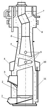 Отопительный котел, показанный на рисунке %%, состоит из наружной рубашки 5, внутри которой расположены огневая коробка 6 и топочная камера 11.