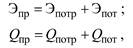 где Эпр - произведенная электрическая энергия, кВт·ч; Эпотр - потребленная электрическая энергия, кВт·ч; Эпот - потери электрической энергии при транспортировке, кВт·ч; Qпр - произведенная тепловая энергия, ГДж; Qпотр - потребленная тепловая энергия, ГДж; Qпот - потери тепла при транспортировке, ГДж.