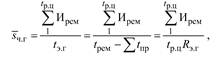 - затраты на все виды ремонта производственного объекта за рассматриваемый расчетный период t (год, ремонтный цикл), тенге.; tэ.г - время эксплуатационной готовности объекта, т.е. сумма времени нахождения его в работе tр.ц и эксплуатационном резерве tрез за период tр.ц; Rэ.г - коэффициент готовности за период tр.ц;