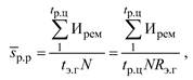 где tр - временя нахождения оборудования в работе; tрез - время нахождения оборудования в резерве; tр.ц - длительность ремонтного цикла; tэ.г - время эксплуатационной готовности. Аналогично могут быть определены коэффициенты нахождения агрегата в простоях различного вида. Сумма коэффициентов нахождения в работе Rр, резерве Rрез, ремонте Rрем и авариях Rав равна единице. Показатель ремонтной составляющей себестоимости продукции (энергии) определяется как отношение расходов на ремонт (капитальный, текущий) продукции за определенный календарный период (например, год) к количеству отпущенной энергетической продукции: