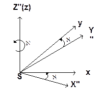 В результате поворота системы координат SX”Y”Z” на угол À эта система преобразуется в систему координат снимка Sxyz (рис.1.2.4).