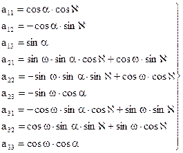 Если известны значения направляющих косинусов aij, то из выражений (1.2.2) можно получить значения углов w,a,À.