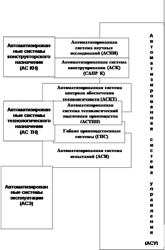 Для автоматизации интеллектуального труда таких специалистов, работающих в информационном слое на различных стадиях жизненного цикла изделия, могут быть применены автоматизированные системы конструкторского (АСКН), технологического (АСТН) назначения и эксплуатации изделия (АСЭ) в состав которых включаются следующие системы:
