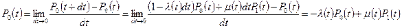 Р 0(t) = – λ(t) Р 0(t) + μ(t) Р 1(t)
