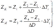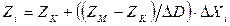 Определение значения Zi выполняется методом билинейного интерполирования (рис.1.9).