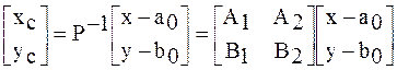 В случае использования аффинных преобразований при выполнении внутреннего ориентирования, определение координат выполняется по формулам: