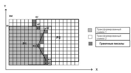 цифрового изображения снимка, на который проектируется точка, соответствующая центру пиксела цифрового ортофотоснимка, и значение его оптической плотности или цвета присваивается пикселу цифрового ортофотоснимка.