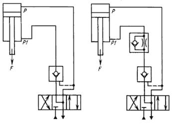 Рис. 4.1. – Схема установки одностороннего гидрозамка: а) без дросселя с обратным клапаном; б) дросселем и обратным клапаном
