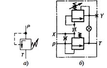 Гидроклапан последовательности (рис.4.4, а). Предназначены для пропускания потока рабочей жидкости при достижении в нем заданной величины давления [5].